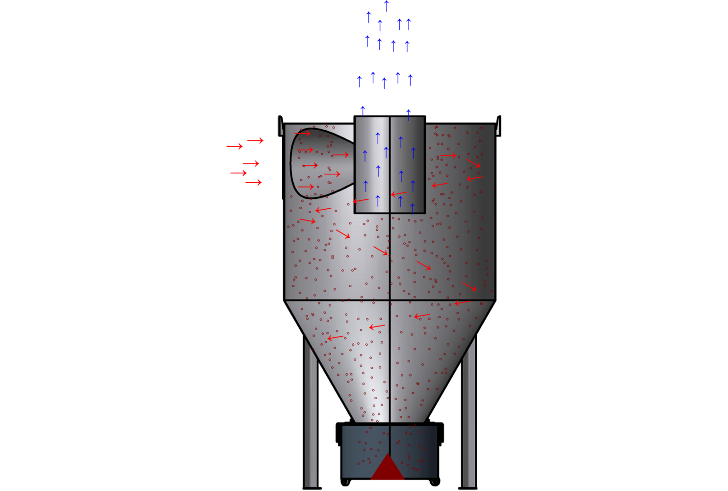 For the separation of certain material types/chips at larger material volumes you can advantageously use a cycklone as pre-separator.