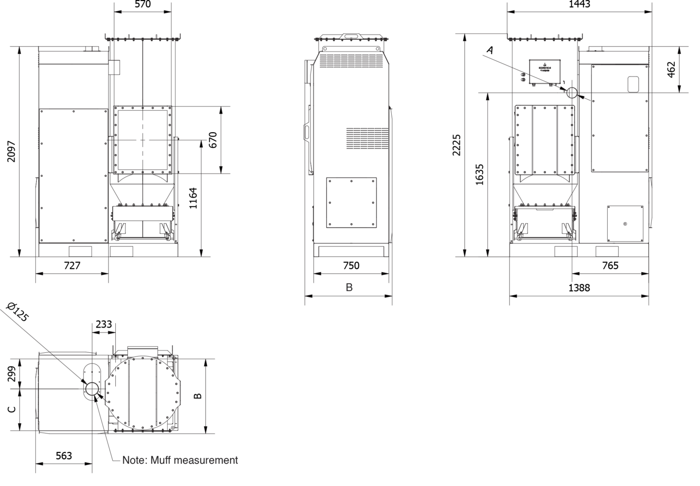 At installation of units with relief membrane you must be aware of the heavy pressure wave and the flame spread that will occur in areas outside of the relief membrane and mount the unit so that the explosion is led away from people and building components.