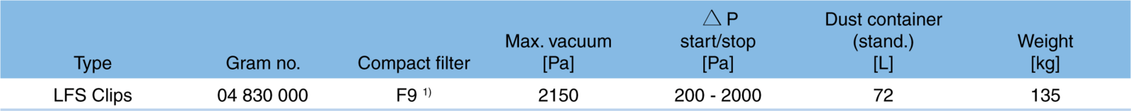 | Filter replacement: | Filter replacement is easily done and dust-reduced by clean air chamber by front door. Filter is locked by quicklock clamp. | ||
