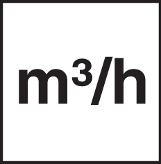 The air volume is standard stated in cubic metres per hour (m³/h).