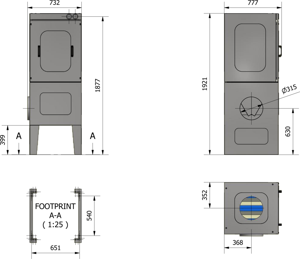 Le boîtier du filtre est fabriqué en tôle d'acier noir de 1,5 mm d'épaisseur. La structure est revêtue d'une couche de poudre de surface RAL 5007/7011.