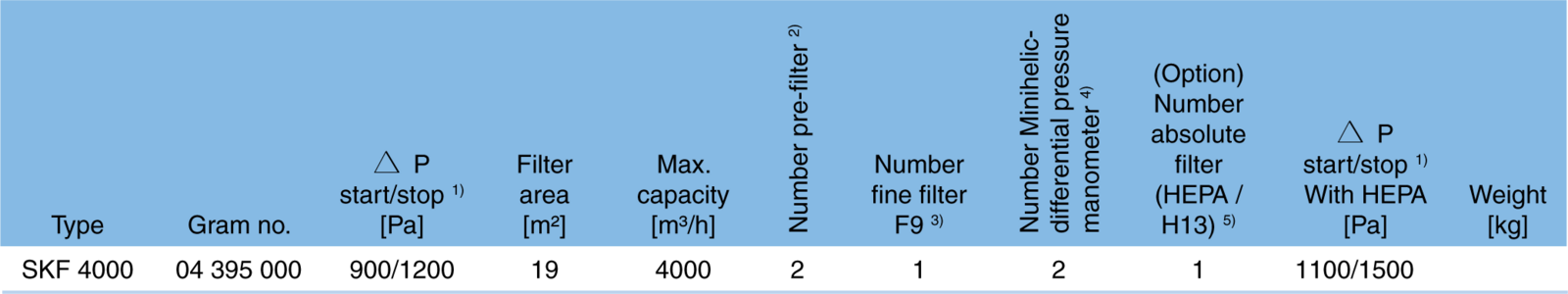 Filtre HEPA (Niveau de filtration 3) | HS-Mikro SFV Filtre à air particulier à haute efficacité, microfiltre (fibre de verre) monté dans un cadre métallique 610x610x292mm | > 99,95% correspondant à la classe de filtre H13 selon DS EN1822 |