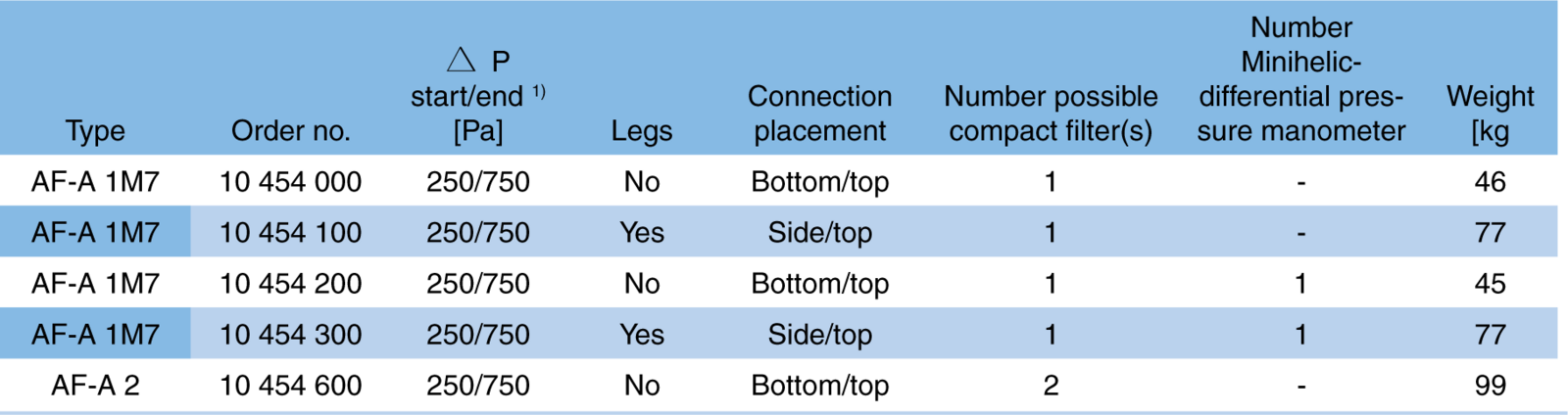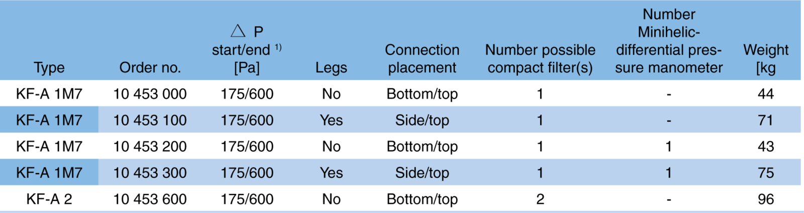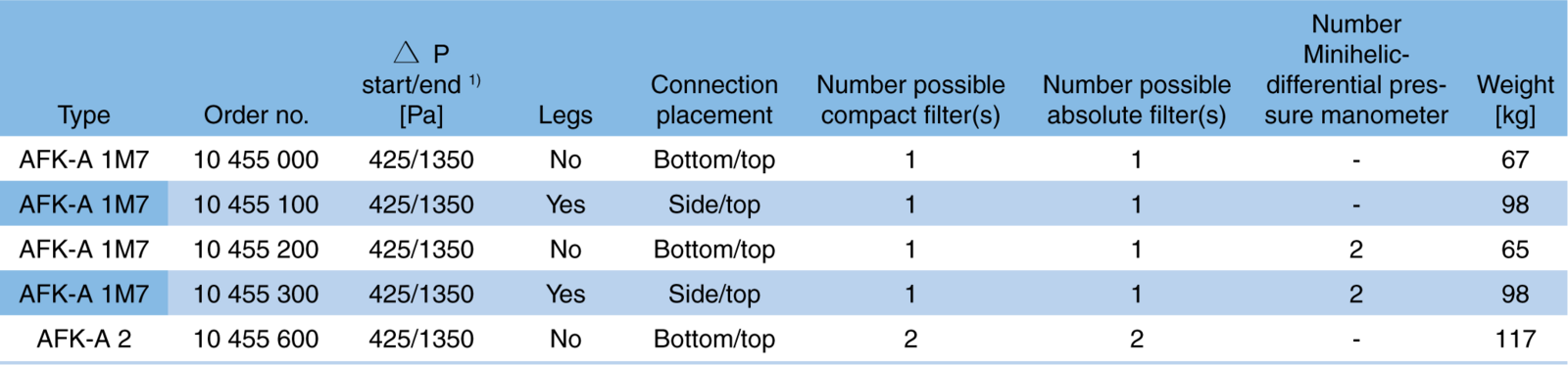 | Les filtres | KF-A | AF-A | AFK-A |